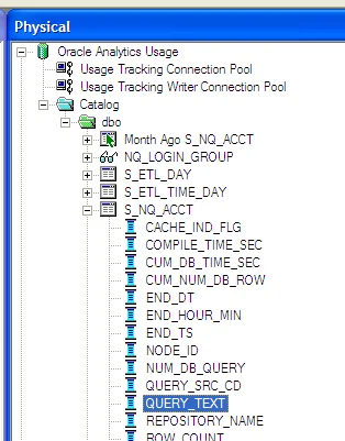 Usage Tracking captures the logical SQL of queries in a column called QUERY_TEXT in the table S_NQ_ACCT. However, out of the box this column is defined as 1k (1024 bytes) long. In some situations this will limit its usefulness because the text will be truncated if necessary when it’s inserted.