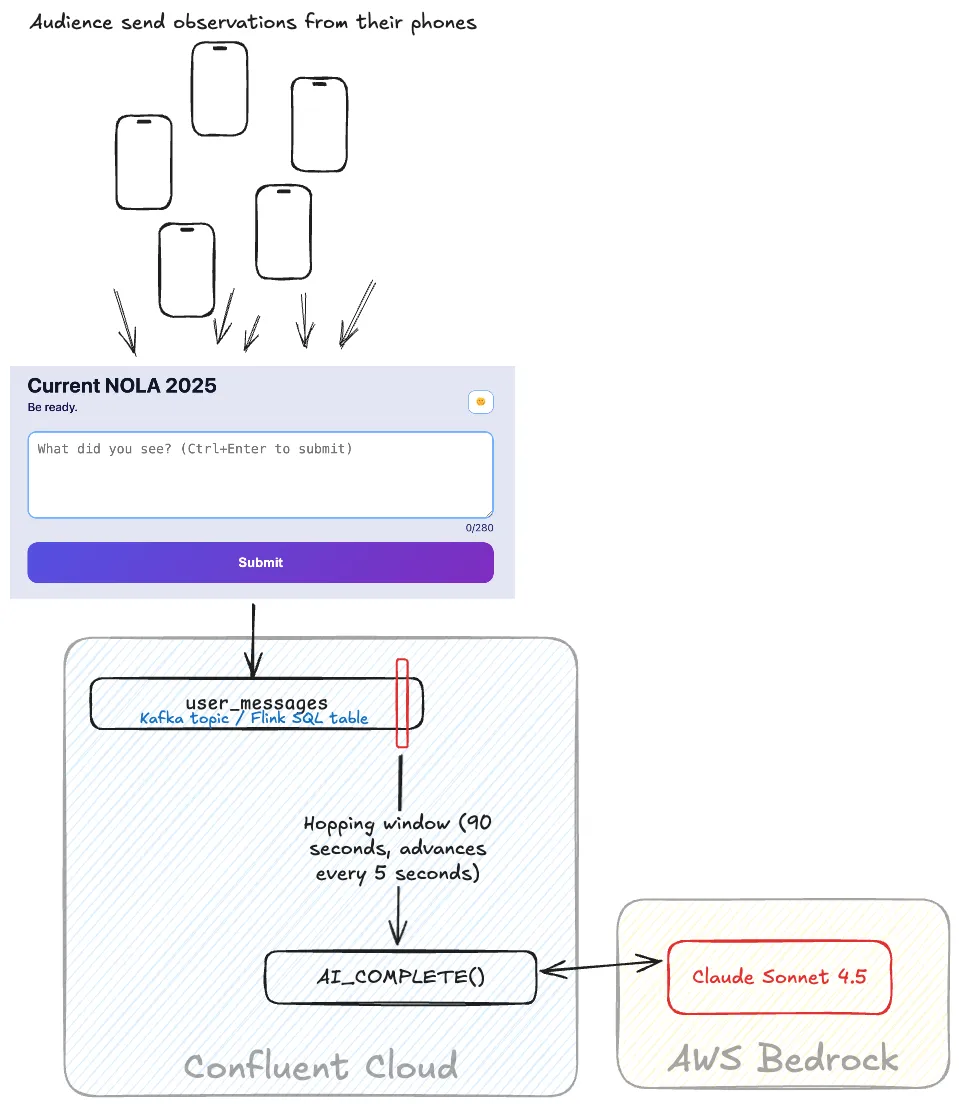 Published by in Stumbling Into AI, Apache Flink, Confluent Cloud, Apache Kafka at https://rmoff.net/2025/11/06/how-we-built-the-demo-for-the-current-nola-day-2-keynote-using-flink-and-ai/