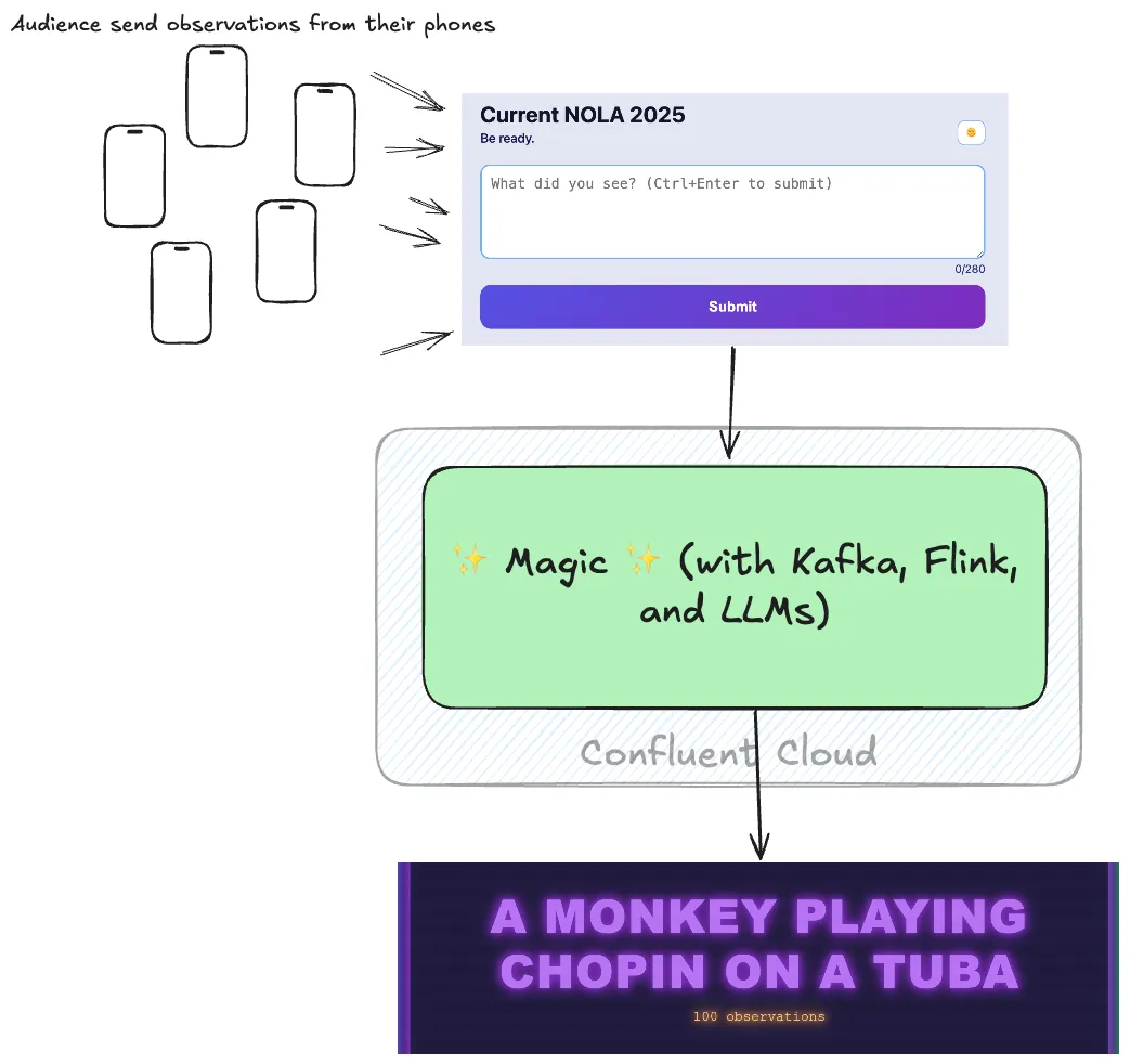 At Current 2025 in New Orleans this year we built a demo for the Day 2 keynote that would automagically summarise what was happening in the room, as reported by members of the audience. Here’s how we did it!
