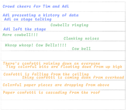 • Sentiment skewed positive: high energy, lots of laughs (cowbells, beach balls, mascot), big applause for demos, awards, and Star Trek bits.